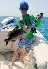 GREAT CATCH! Happy Birthday!Sidney Swink added this red grouper to her Catch a Florida Memory Saltwater Life List on a family fishing trip in Key Largo the day after her 9th birthday. She caught it on a piece of cut ballyhoo.