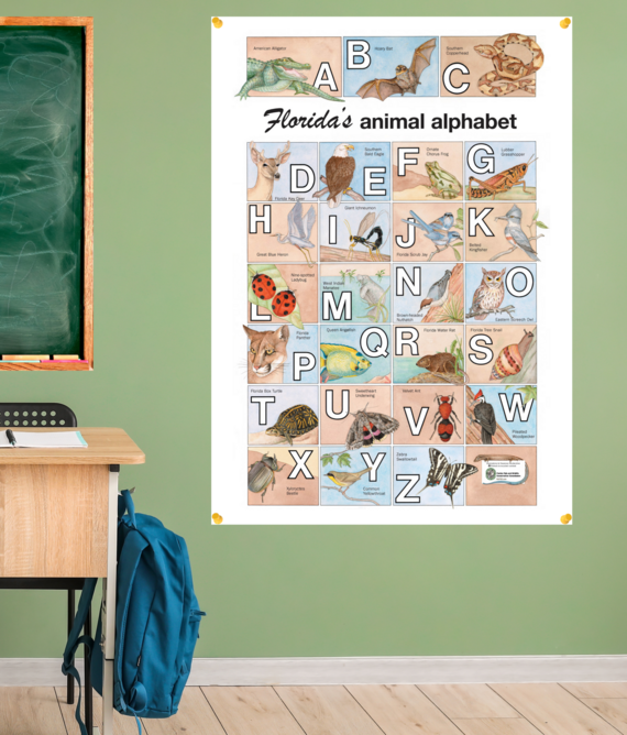 Our other location, Dreher Park South, was a much smaller site with people walking all over the place and nice paved trails. We were there 2 hours and 20 minutes, which was actually longer than I thought it would take us to cover it. It was a small area, but we saw a lot of songbirds in some wooded patches. We saw almost as many species there as we did in the much bigger state park. One thing to pay strict attention to is when you actually enter the count zone. When we did the Dreher Park count there was a Pie-billed Grebe that we didn't have on our list yet on the other side of the dotted line. We sat there watching for it to cross that imaginary line, and only when it did, we put it on our list. That's part of science, making sure your data is exact. It was fun watching that grebe swim into the area where we could check it off. You can also bird by car. We saw a number of species by vehicle that were still in our count zone and were able to include them. The best species we observed was two Western Tanagers that my brother and I spotted in Dreher Park. That was a life bird for me. I was grateful to have my brother with me because I've never seen that species before and he was the first one to identify it. He was able to get a couple of good photos that helped us positively identify both birds afterwards. It was only the fourth sighting of Western Tanagers for the West Palm Beach CBC, and they made the list of notable species. Other birders have now gone to tiny little Dreher Park to try to get Western Tanager on their year or county list, or, like me, their life list. If anybody does a Christmas bird count, I really encourage them to try to join up with a more experienced birder. It's much more fun doing it with someone else. My brother Dan is a much better and much more avid birder than I am. We were in the Atlantic Ridge State Park walking along and Dan glances over at a particular marshy spot and he declares we need a snipe. He walks 50 yards, flushes a snipe and we get that on the list. That was the only snipe that we saw the entire trip, and that was only one of two snipe seen in that county for this year’s CBC. It was a significant contribution to the bird count. My jaw kind of dropped. But that's an example of the kind of experience and expertise that you can benefit from. People who are more experienced know where to find the bird, and they can tell you, hey, notice what this bird is doing; notice this wing bar, or this eye ring, or this other characteristic. That really accelerates your proficiency as a birder.  John Cimbaro (left) with his niece Sophie (center) and brother Dan (right) doing some family birding.  The Florida's Animal Alphabet poster. A child is never too young to learn about and experience the magnificent beauty and diversity of our state's wildlife and habitats. The Florida's Animal Alphabet poster is designed to introduce young children to Florida's wide variety of native wildlife. Each letter of the alphabet is paired with an engaging and beautiful illustration of one of Florida’s native species. It’s perfect for classrooms, playrooms, bedrooms or anywhere children play and learn. Poster size is 22" x 34". Order your free poster here.  Detail from the Florida's Animal Alphabet poster. |